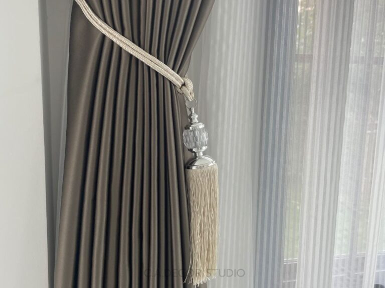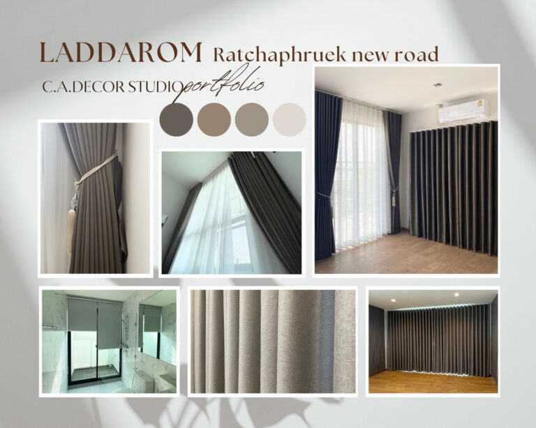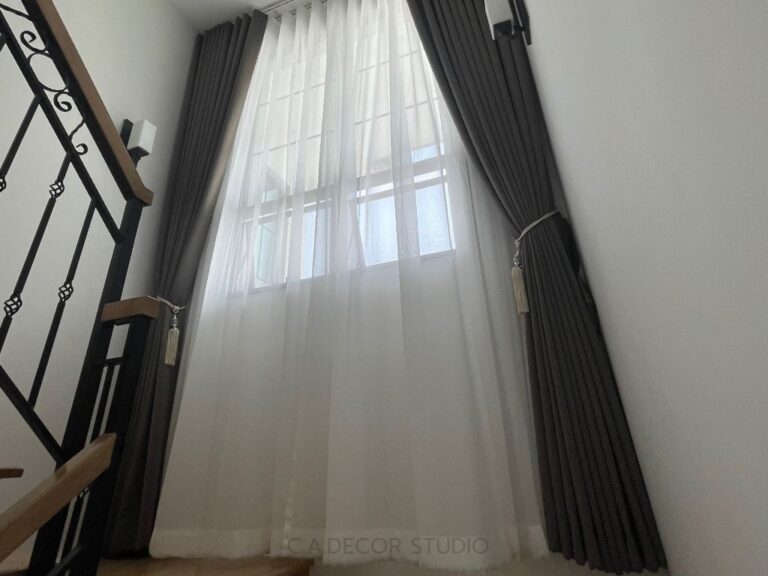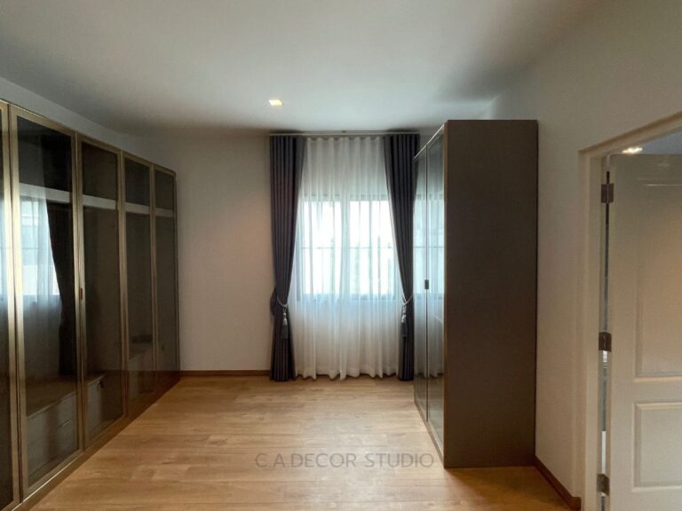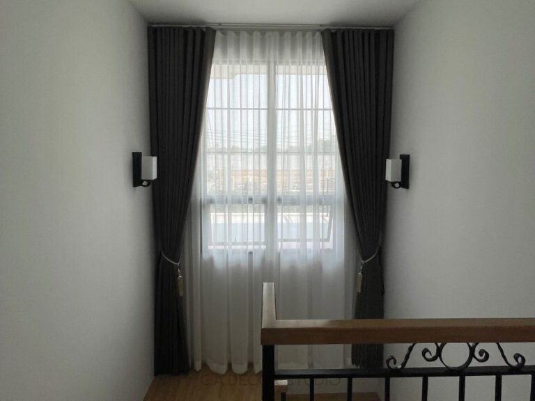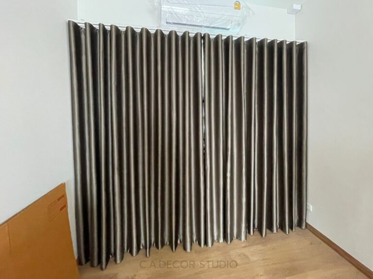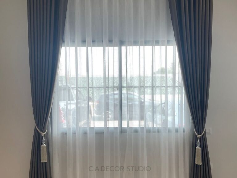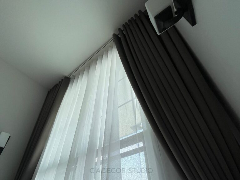 โครงการนี้เลือกทำม่านลอน โดยใช้ผ้าสีน้ำตาลเข้มเนื้อกึ่งเงา ถือเป็นตัวเลือกที่ดีที่จะเพิ่มความหรูหราและมีมิติให้กับบ้านของคุณ ผ้ากึ่งเงาจะช่วยให้ม่านสามารถเล่นแสงได้อย่างน่าสนใจ ไม่ทำให้บ้านมืดจนเกินไป ในขณะเดียวกัน การติดม่านโปร่งที่มีลายเส้นตรงเป็นการเพิ่มลูกเล่นให้กับการตกแต่งภายใน ทำให้บ้านดูมีชีวิตชีวาและมีสไตล์ การผสมผสานระหว่างม่านลอนและม่านโปร่งจึงช่วยสร้างบรรยากาศที่อบอุ่นและน่าดึงดูดใจให้กับพื้นที่ของคุณได้อย่างลงตัว