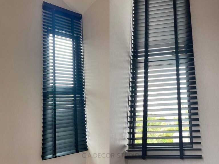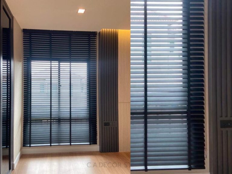 มู่ลี่ไม้สีดำที่ใช้ในห้องนอนใหญ่ของลูกค้านั้นไม่เพียงแต่ทำหน้าที่ในการควบคุมแสงและความเป็นส่วนตัว แต่ยังกลายเป็นองค์ประกอบสำคัญที่เสริมสร้างความงามให้กับห้องอย่างโดดเด่น สีดำของมู่ลี่ไม้สร้างความรู้สึกหรูหราและทันสมัย ในขณะเดียวกันก็ให้ความอบอุ่นและเป็นกันเอง การเลือกใช้มู่ลี่ไม้ในทุกจุดของห้องยังช่วยให้เกิดความสอดคล้องและความสมดุลในการตกแต่ง ทำให้ห้องนอนดูสะอาดและเป็นระเบียบมากขึ้น